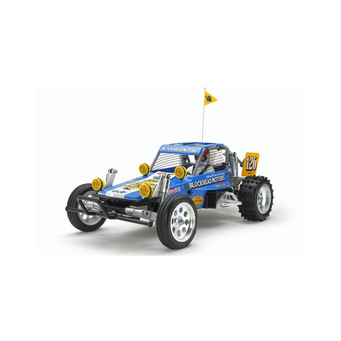 Réédition en série limitée du Wild One avec une décoration spéciale conçue par le bureau "BLOCKHEAD MOTORS" du designer Jun Watanabe qui a déjà produit des stickers, vêtements et des customisations de buggies RC Tamiya à partir des années 1980.