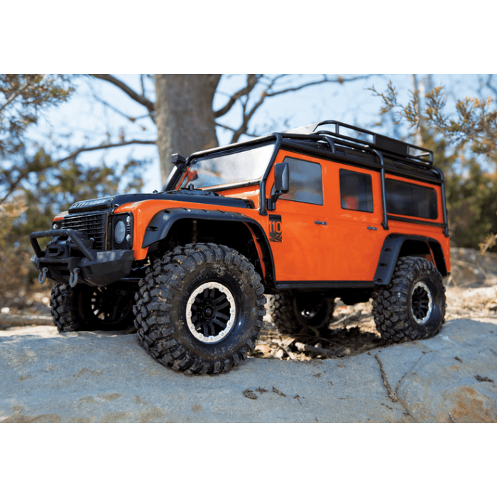 - Pour se rapprocher au plus possible de la version a léchelle 1 du Defender Adventure Edition un sticker « 110yr » est appliqué sur la carrosserie.
