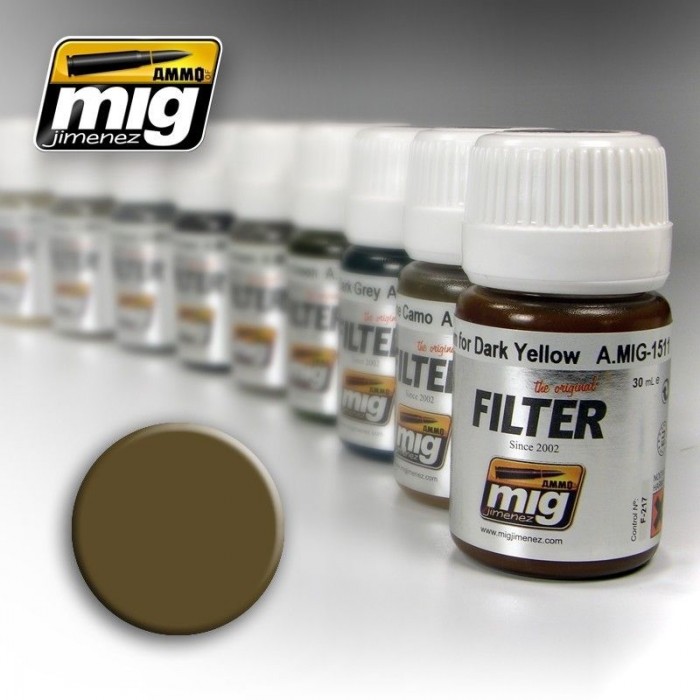 En 2002 Mig Jimenez créé pour première fois les filtres basés sur sa technique développée en 1998. Ces produits deviennent très populaires dans le monde et, après de nombreuses années Mig a décidé de les ressortir avec un nouveau look et une nouvelle formule. Le produit le plus authentique de Mig désormais sous le label Ammo of Mig Jimenez.