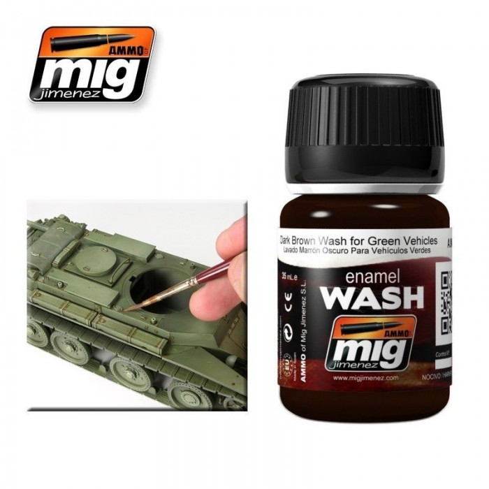 Peinture Mig Jimenez Lavis A.MIG-1005 Dark Brown Wash For Green Vehicles