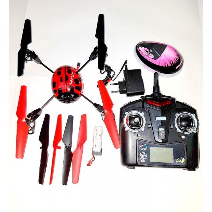 Le MINI Q4 est le dernier né de la famille des quadricoptères RC System. Livré avec un émetteur 4 voies 2,4GHz, un gyroscope 3 axes, accus de réception et chargeur 220V, il ne vous restera plus qu'à installer 6 piles AA (non incluses) dans l'émetteur pour profiter de l'étonnante stabilité en vol de ce modèle.