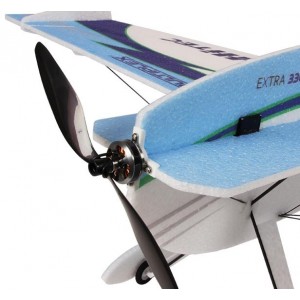 Eléments du fuselage, des ailes, de lempennage et du train datterrissage en EPP avec impression en couleurs. Longerons des ailes et du fuselage en CFK, jambes de train en CFK, roues. Toutes les petites pièces diverses en plastique nécessaires au montage et au raccordement des tringles. Notice détaillée.
