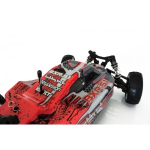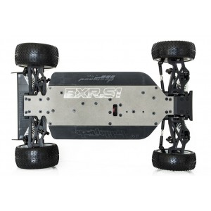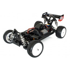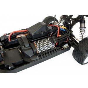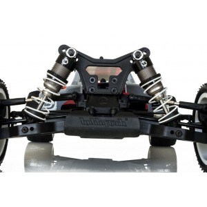Sorti de sa boite le véhicule est livré avec des différentiels à pignons métal avant et arrière ainsi quun slipper central réglable, des amortisseurs gros volume entièrement en aluminium et des cardans type « CVD » à lavant viennent compléter une transmission composée de cardans en acier et entièrement montée sur roulements.