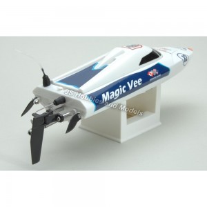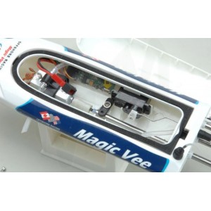 On aurait pu également le dénommer le Pocket Magic Vee EP, sa longueur de 225mm lui permettant presque de tenir dans votre poche. Mais il ne sera pas en reste au niveau de sa vitesse par rapport à ses grands frères de la gamme JOYSWAY car son moteur électrique 180 refroidi par eau et son faible poids de 125g lui permettent d'atteindre plus de 20 km/h. Oui 20 km/h pour une longueur de 225mm, il vous faudra un peu de dextérité pour le piloter !